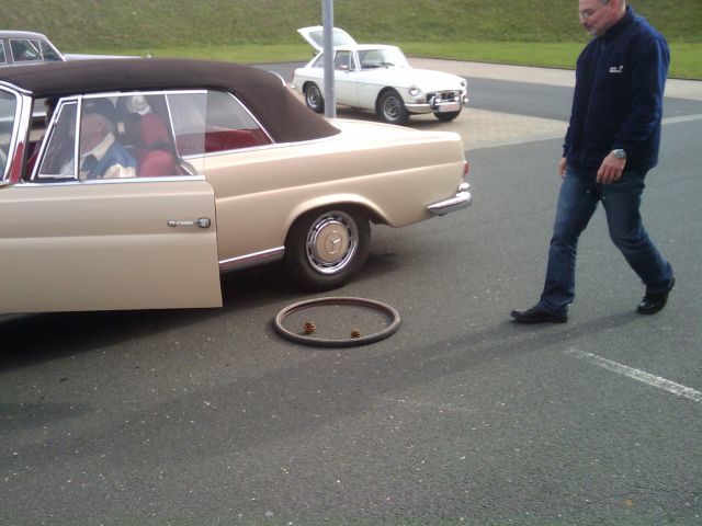 Selbst das Wetter spielte mit - bewölkt bis sonnig, aber trocken. Ideale Voraussetzungen, um eine gemeinsame Ausfahrten durch die Eifel zu genießen. Moment mal ... genießen ? Selbst auf dem bergigen Land ist es unmöglich als Gruppe von ca. 20 Fahrzeugen zusammen zu fahren. Zum anderen ist der Sportwart für seine Sonderprüfung genauso bekannt, die für den nötigen Nervenkitzel unterwegs sorgten. Die kostbaren Weinpräsente zum Abendessen im Clublokal mußten sich die 3 Gewinner durch Geschicklichkeit und gutes Einschätzen der eigenen Fahrkünste erkämpfen. Eine kurze Strecke schnellstmöglich befahren und eine festgelegte Anzahl Tannenzapfen IN mehrere Reifen unterwegs zu werfen, war die erste Aufgabe. Eine exakte Strecke vorwärts zu fahren, war etwas einfacher zu schaffen. Abschließend einen sauberen Kreis auf einem großen Parkplatz zu fahren, möglichst schnell und nicht zu oft den Schraubenschlüssel über den Boden schleifen zu lassen, der zwischen eigenem Außenspiegel und der Stange in der Kreismitte an einem Seil hing, ist einigen langjährgen Mitgliedern bereits als Sonderprüfung bekannt. An der Schwierigkeit der Prüfung ändert das allerdings nichts.