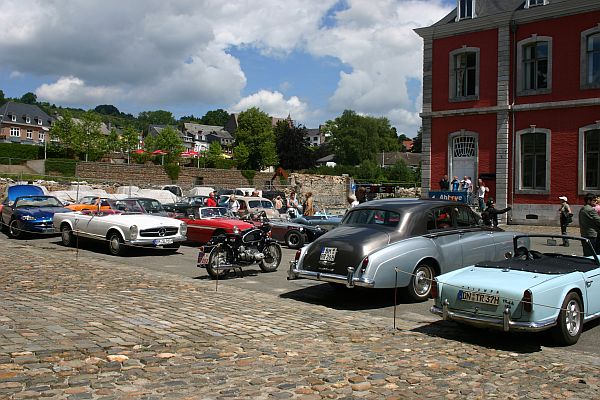 Dann ging die Fahrt gemeinsam weiter nach Stavelot in die Abtei zu unserem Ehrenparkplatz im Innenhof. Da wurden wir bestaunt kann ich Euch sagen, besonders von der dort anwesenden Hochzeitsgesellschaft! Unsere Leute bevölkerten in der Zeit die 3 in der Abtei befindlichen Museen. Besonderes Interesse fanden natürlich die im Kellergewölbe untergebrachten alten Rennautos, Motorräder und Fotopräsentationen.